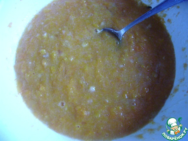 Смешиваем банан, тыквенное пюре, яйцо, белки, растительное масло, ваниль и сахар.