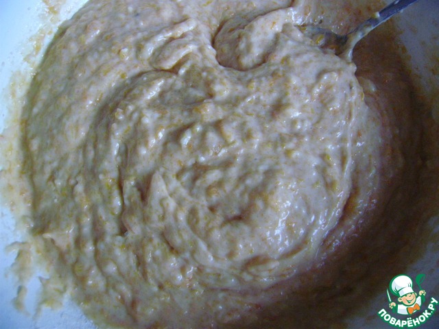 Добавляем муку, разрыхлитель, соду и соль. Замешиваем однородное тесто.