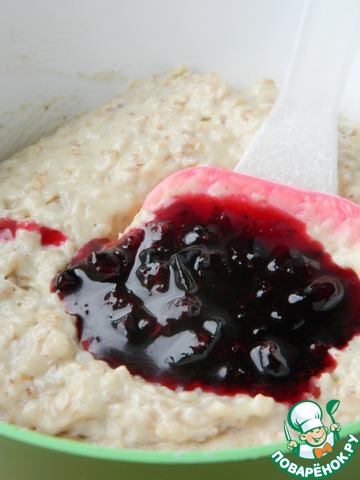 Добавить ягоду. У меня была черная смородина с сахаром. Думаю, подойдет любая ягодка (красная смородина, клюква, вишня). Слегка перемешать.
