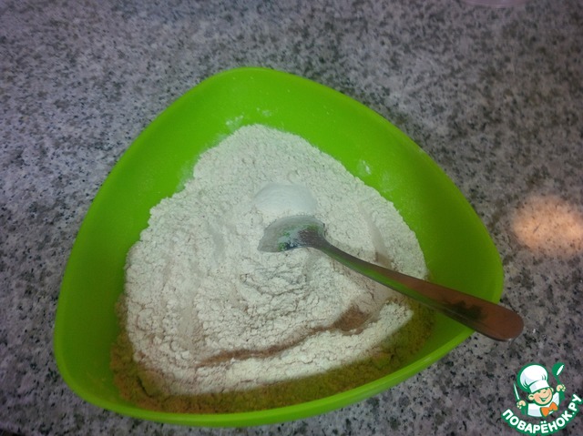 Просеиваем вместе муку, соду, крахмал и соль. Смешиваем со специями. Смешиваем все сухие ингридиенты