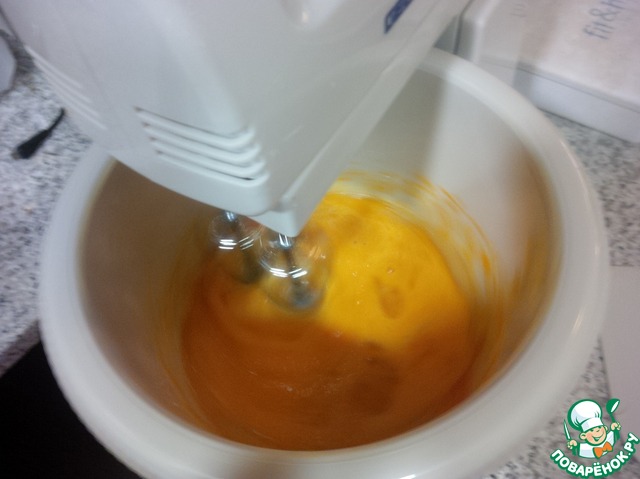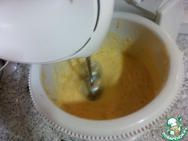 Добавляем яйца к нашей смеси. Очень хорошо все взбиваем до абсолютно однородной массы. Сейчас лучше всего включить духовку и разогреть до 180С, а также смазать маслом форму, чтобы все было готово для выпекания.