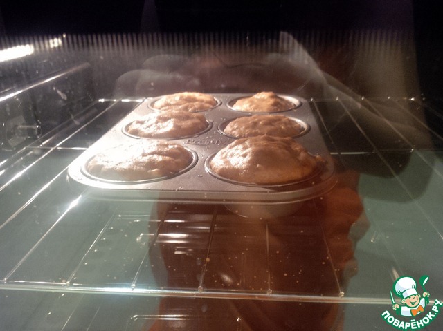 Ставим наши кексы в разогретую до 180С духовку. Выпекаем 15-20 минут. Смотрите по своей духовке и проверяйте деревянной палочкой.