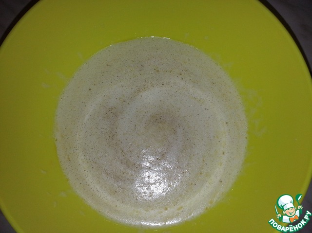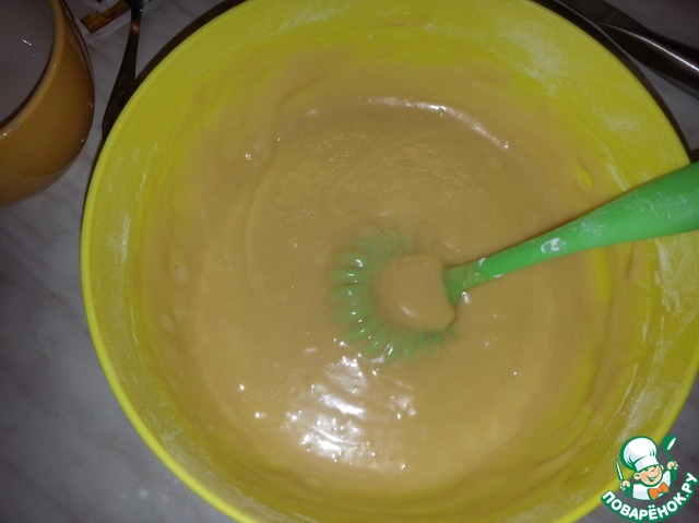 Добавляем разрыхлитель и муку, одновременно перемешивая. Все хорошенько размешать, что бы не было комочков.