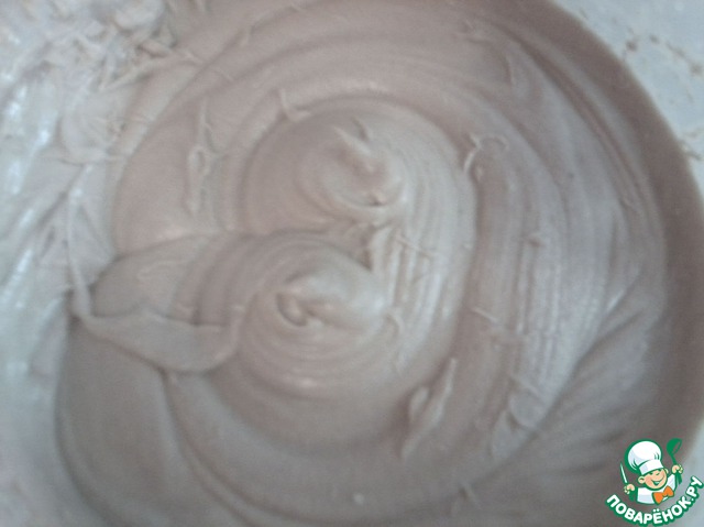 Масло смешиваем с сахаром, вaнильным сахаром, яйцами и какао.