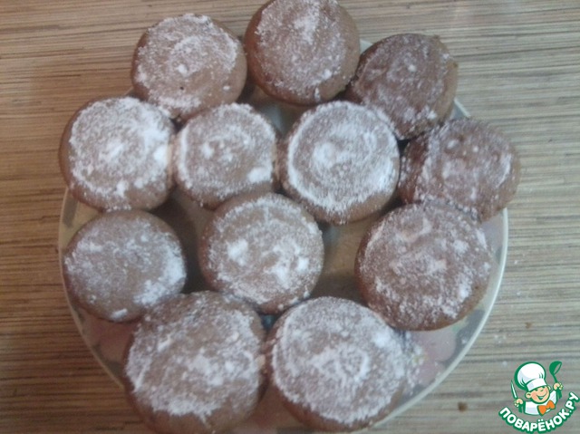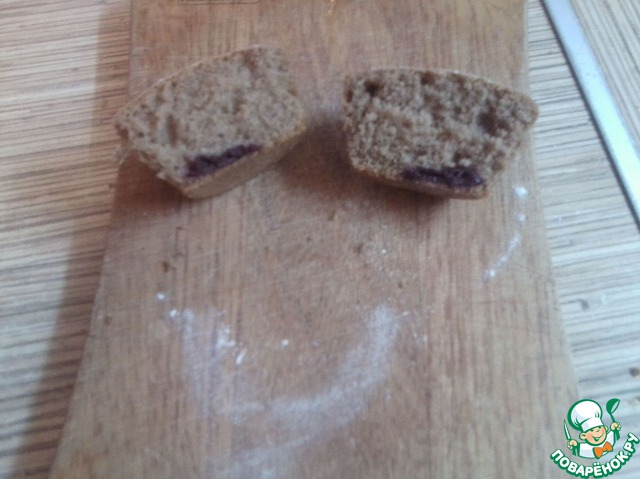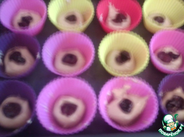 В формы наливаем чуть-чуть тестa (чтобы дна не было видно).