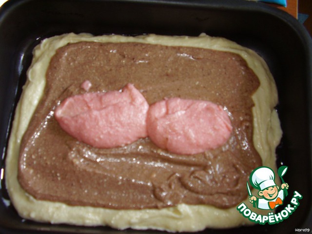 Особенно красиво получается в прямоугольных длинных формах. Тесто само распределяется - красный спускается вниз, а черный - вверх.