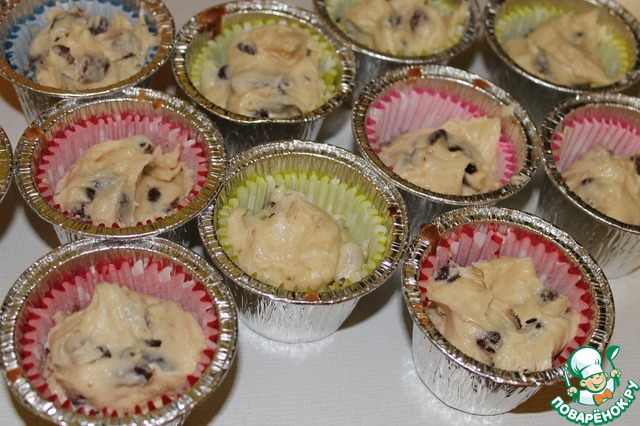 Все еще раз перемешиваем и раскладываем по формочкам. Выпекаем около 30 мин.