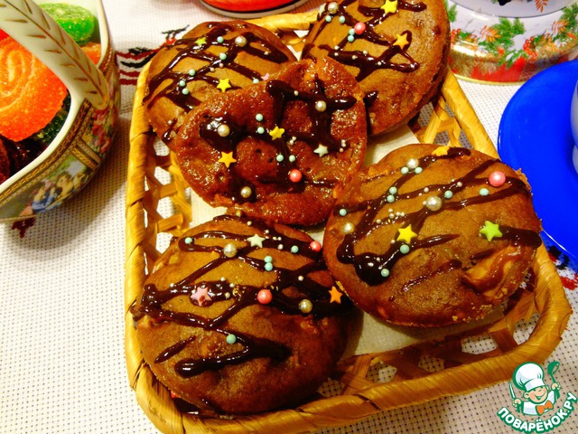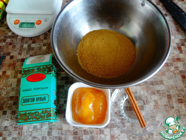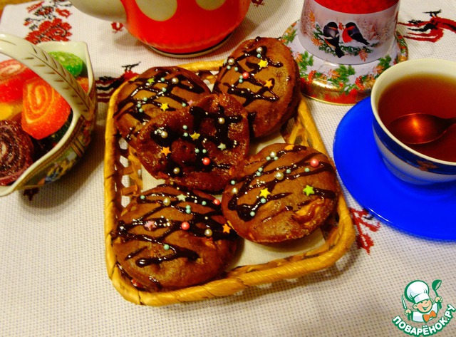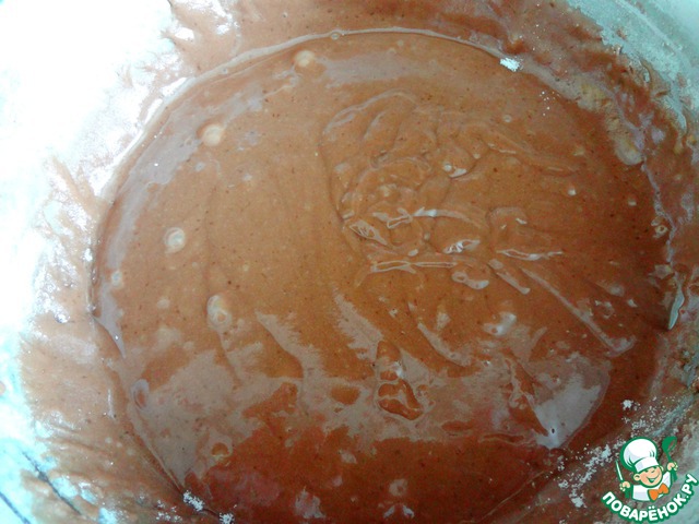 В чашку с сахаром вылить, положить мёд и 1 стакан воды. Поставить на газ и немного подогреть, чтобы сахар и мёд растворился, добавить туда 2ст. л. порошка какао, масло растительное. Взбить венчиком. Просеять муку, ввести 1 ч. л. соды, гашеной уксусом. Положить 1ч. л. соли. Замесить не очень густое тесто. Чуть гуще, чем на оладьи.