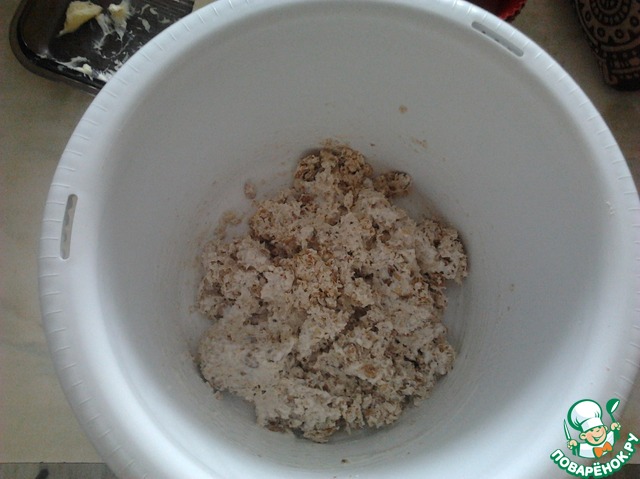 К хлопьям добавляем яйцо, растопленное сливочное масло и кленовый сироп, перемешиваем.
