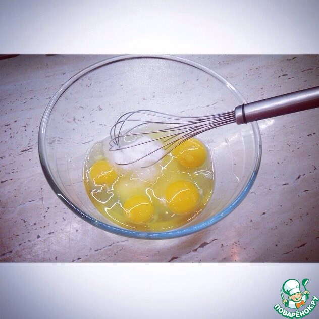 Итак, берем глубокую миску, туда добавляем сахар, ванильный сахара, яйца и перемешиваем.