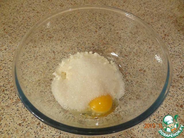 Муку смешать с разрыхлителем, всыпать в творожную массу, заместить тесто, по консистенции похожее на тесто для оладий.