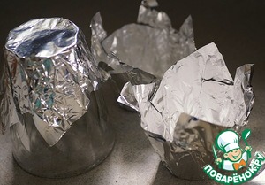 Сначала делаем формочки. На обычный стакан - квадрат фольги и прижать.