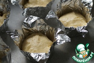 | Обычный маффин поместится в ладони взрослого человека. Это маленькая круглая выпечка, преимущественно сладкая, в состав которой входят разнообразные начинки, в том числе фрукты и ягоды. В одной из версий слово маффин произошло от французского слова moufflet, что означает мягкий хлеб./из Википедии/. Мой вариант в фольге подходит для пикника... удобно транспортировать. И ещё посуду мыть не надо после выпечки. |