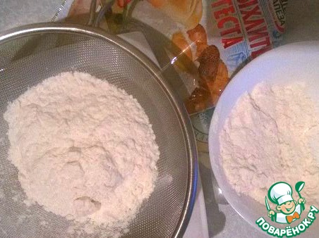 В муку добавляем разрыхлитель и просеиваем 2/3 раза.