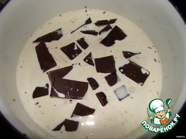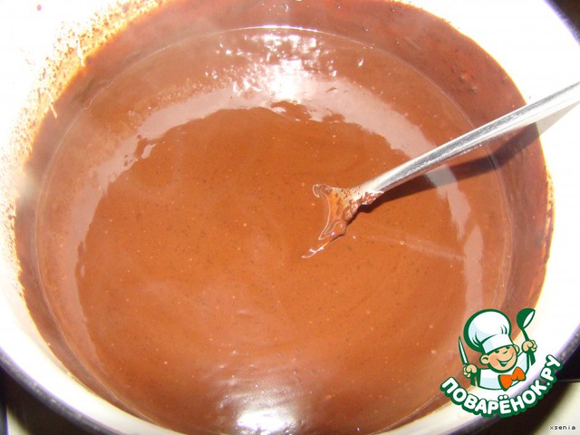 Продолжаем нагревать, помешивая...шоколад должен раствориться...масса загустеть..