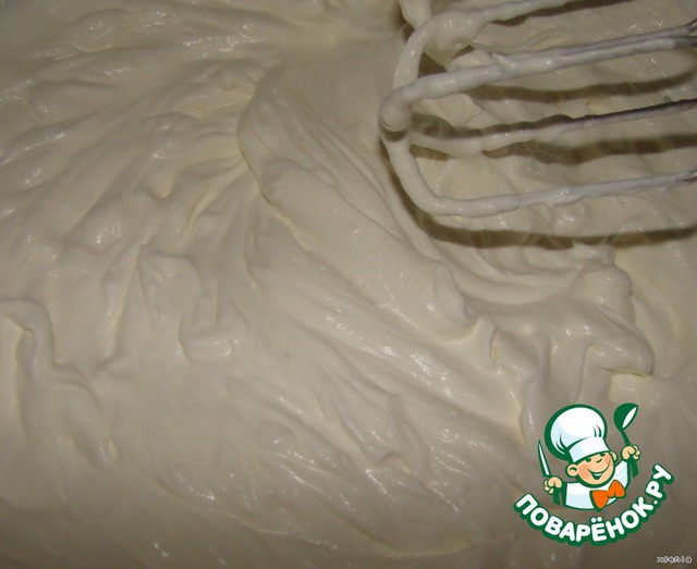 Остывшие сливки взбиваем 5-6 минут с маслом...масса должна увеличиться в объеме...примерно в 2 раза