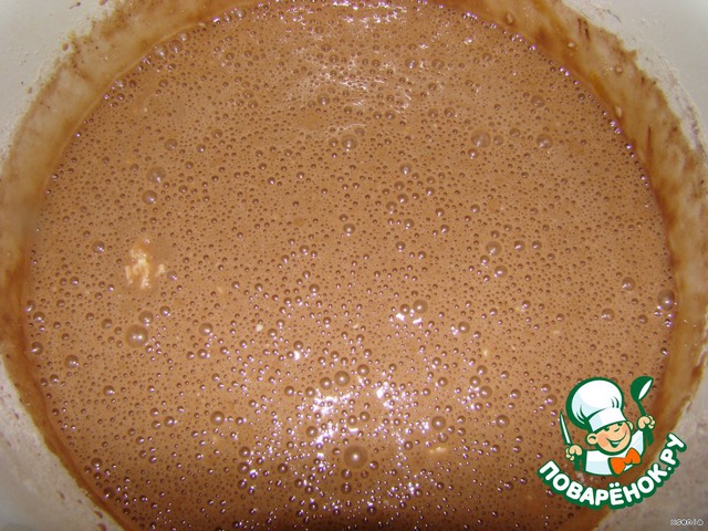 Смешаем муку, крахмал и какао. Яйца разотрем с сахаром. Добавим муку. Хорошо размешаем и добавим размягченное масло.