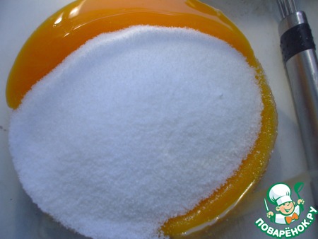 Чуть взбить 3 яичных желтка с 92 гр сахара.