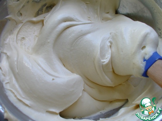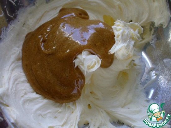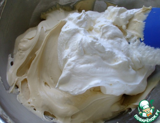 Взбить 375 гр маскарпоне и ввести в него в 2-3 приема заварной крем, взбивая на средней скорости миксером. Долго не взбивать!