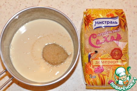 Для шоколадного покрытия нагревайте концентрированное молоко с 1/4 стакана коричневого сахара до растворения последнего.