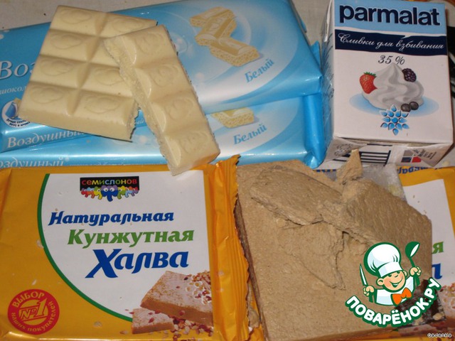 Тортик очень вкусный получается, насыщенный вкус халвы, нежность сливок и аромат шоколада, даже совесть не останавливает!!!