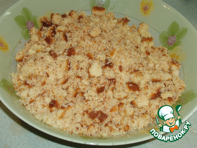Беремся за "обрезки" из теста - дробим их руками на максимально мелкие кусочки :)
