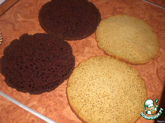 Выпечем поочерёдно коржи. Выпекать приблизительно 25 минут.