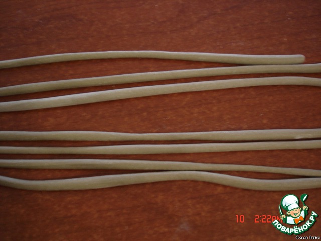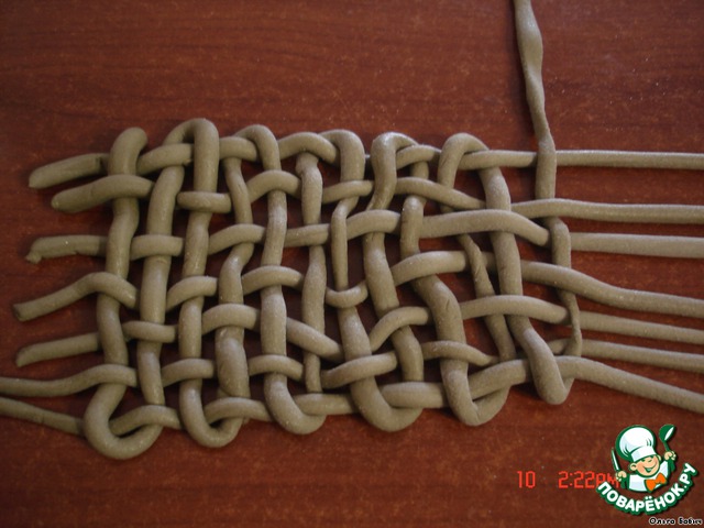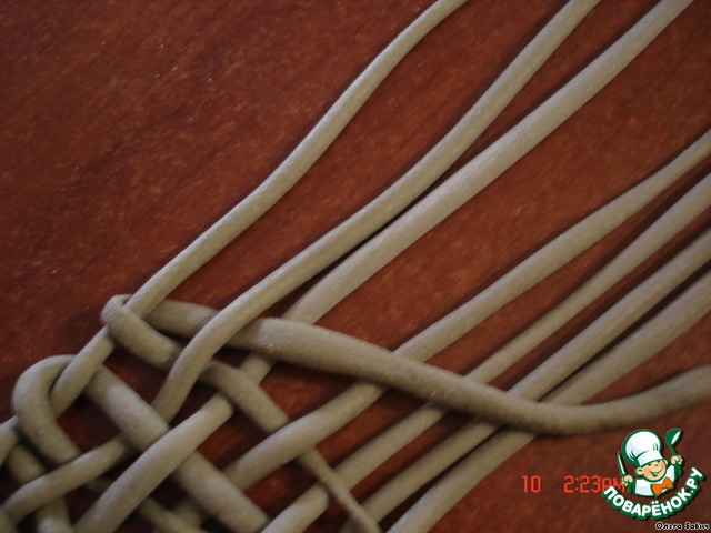Начинаем протягивать 1 полоску, чередуя сверху и снизу.