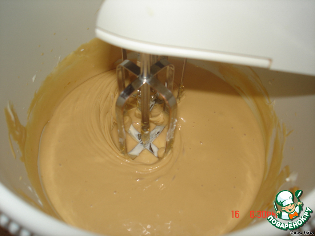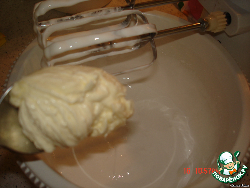 Постепенно по 1 ложке добавляем к белкам взбитое масло.