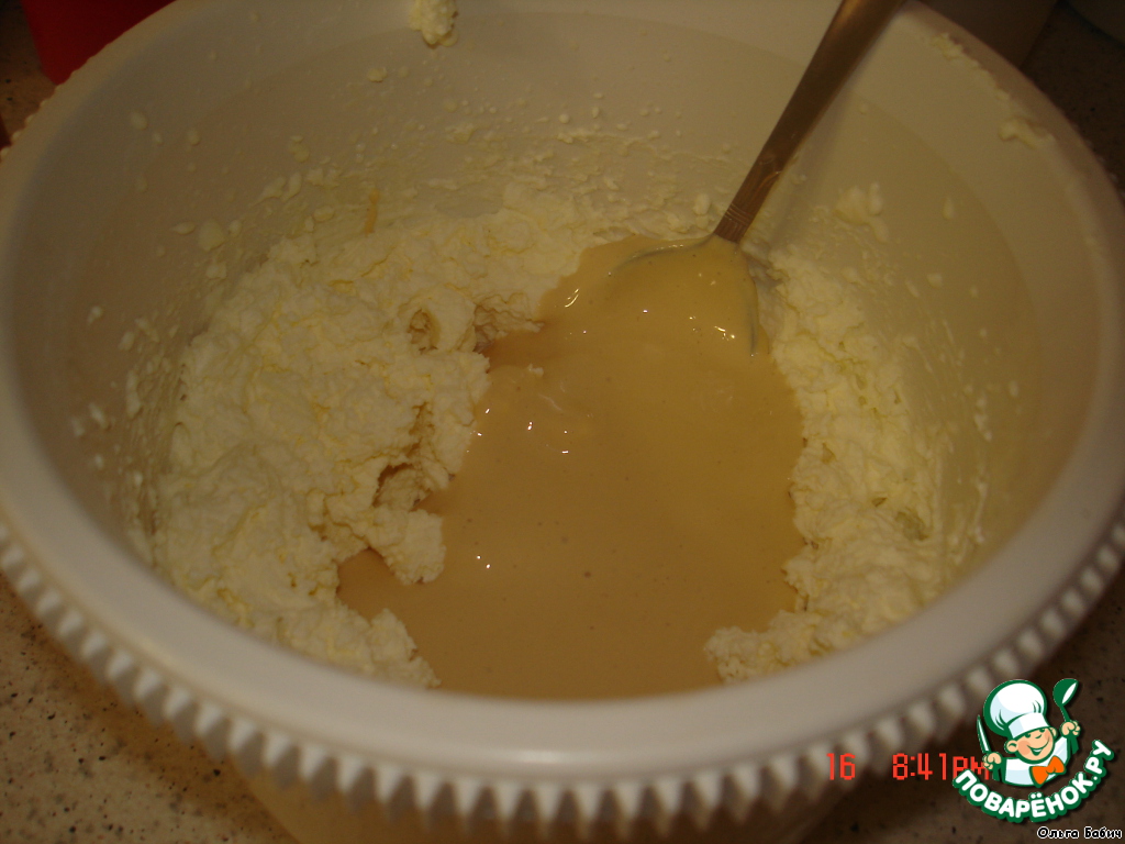 Отдельно взбить сливки и ложкой смешать со сметанным кремом.