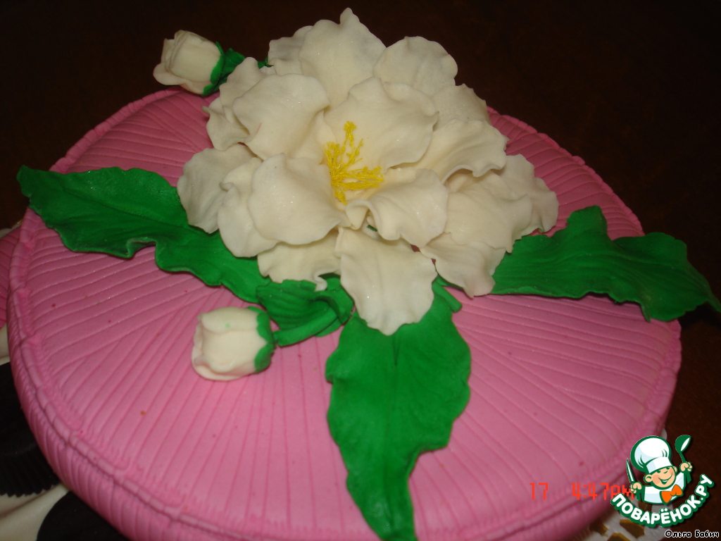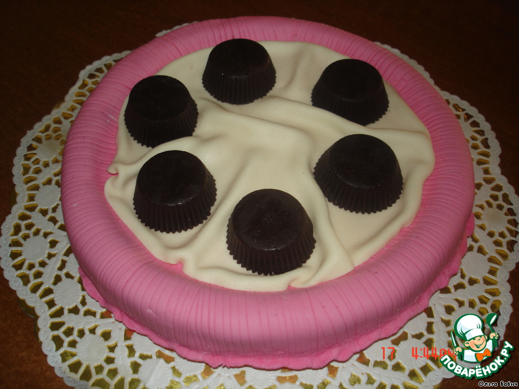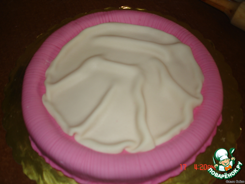Внутри укладываем белую мастику, на нее будем укладывать конфеты.