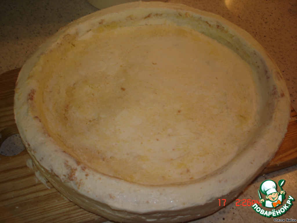 У большого бисквита немного выбираем серединку, промазываем бока.