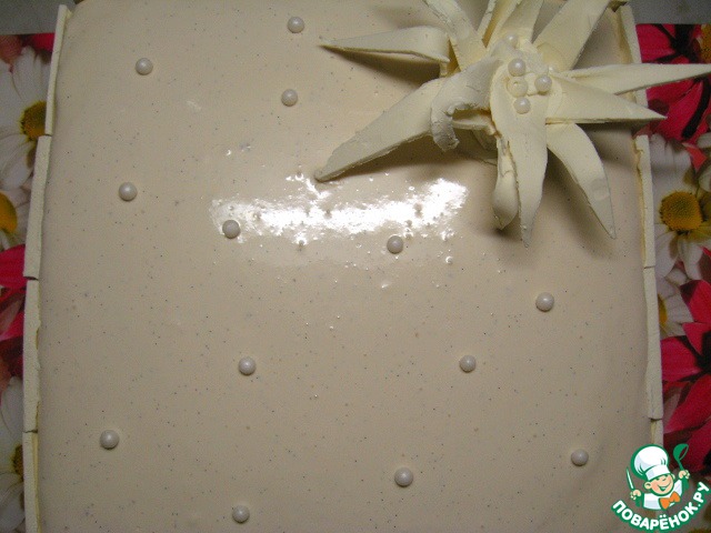 Перед подачей посыпьте поверхность торта сахарными жемчужинами.
