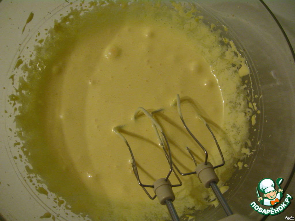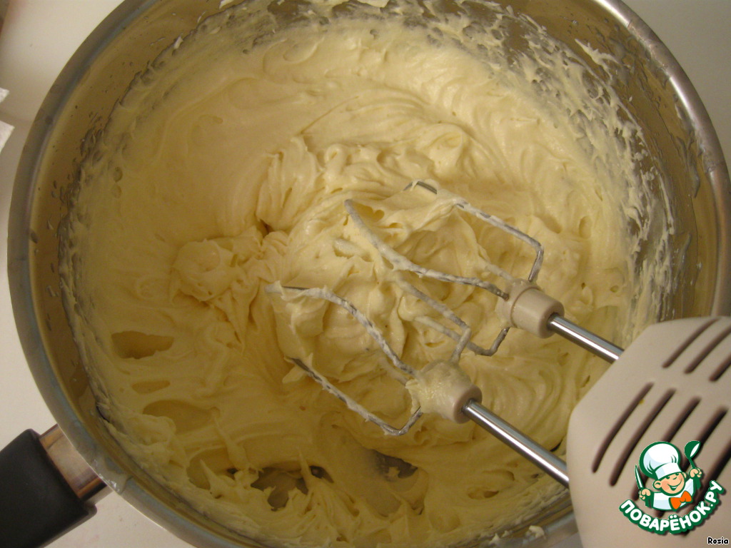 Взбиваем миксером 100 г. размягченного сливочного масла. Добавляем по 2 ст.л. заварного крема (что мы сварили и остудили) и каждый раз хорошо взбиваем.