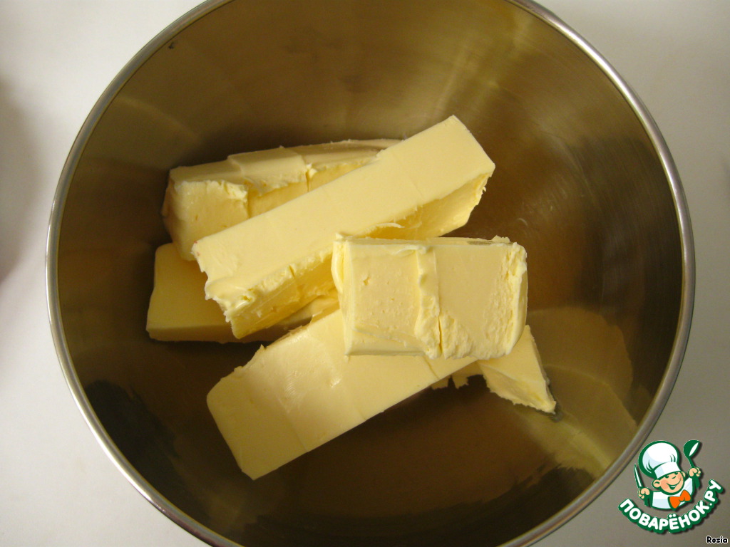 Взбиваем миксером 200 г. размягченного сливочного масла. Добавляем по 2 ст.л. заварного крема (что мы сварили и остудили) и каждый раз хорошо взбиваем.