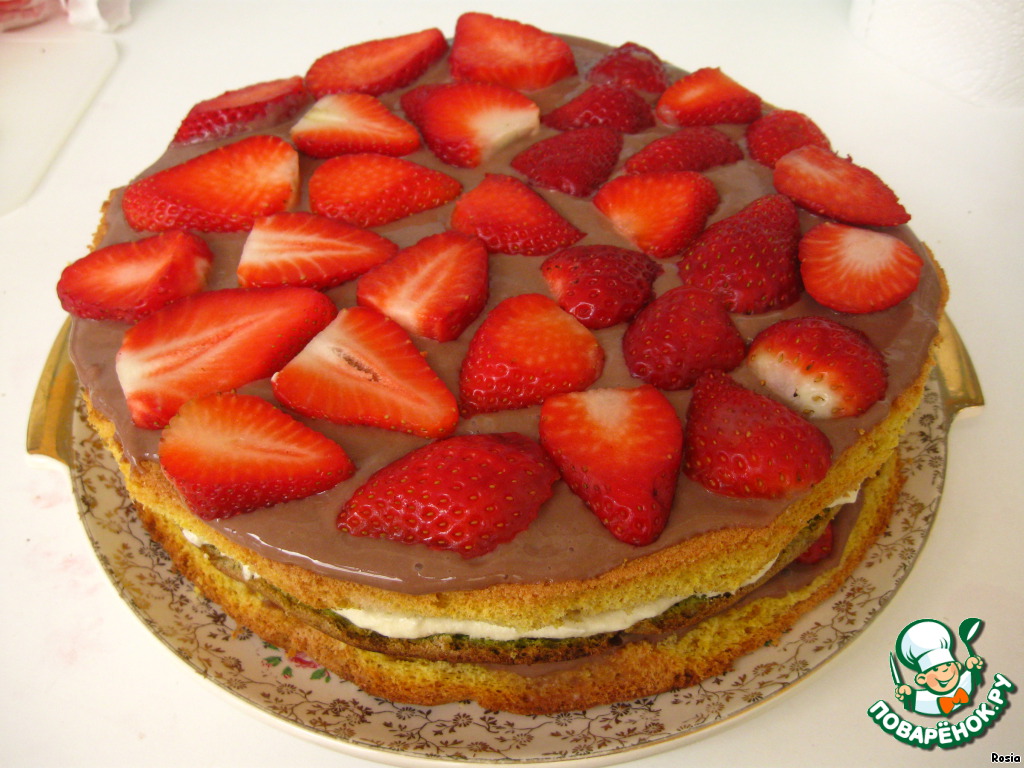PS: Поскольку это был творческий эксперимент, я решила не добавлять масло в шоколадный крем (на фото в разрезе видно, что он более жидкий в сравнении с белым кремом), но я не рассчитала того, что клубника сама по себе тяжелая и будет выдавливать нежный крем ПОЭТОМУ В РЕЦЕПТЕ В ШОКОЛАДНЫЙ КРЕМ ДОБАВИЛА 100 г. МАСЛА, чтоб крем держал форму (как белый).