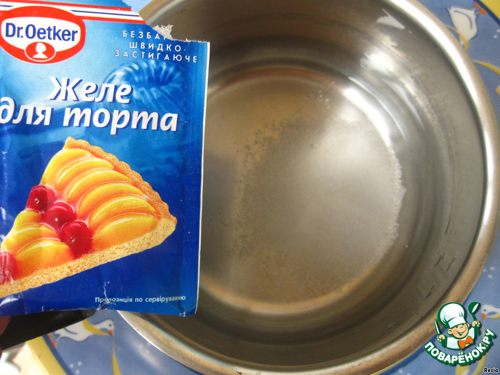 Приготовить желе для торта по инструкции (чуть-чуть).