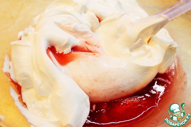Размешайте желатин в клубничное пюре и дайте немного остыть.