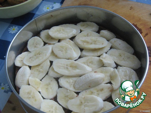 Суфле выложить на бананы и отправить в морозилку застывать.