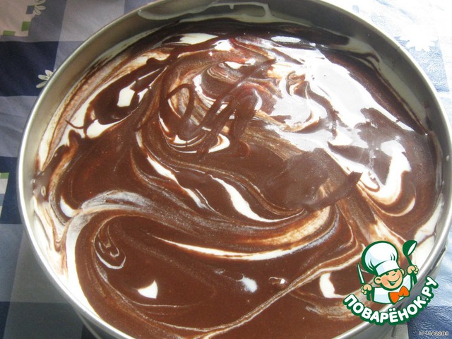 Когда еще суфле не застыло глазурь вылить сверху мраморным рисунком.