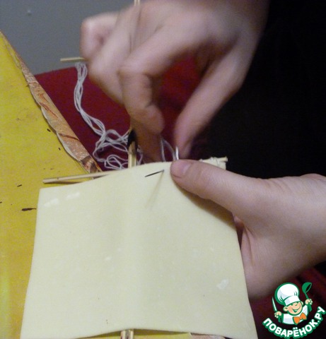 Так как у меня паруса не высохли, я их решила пришить. Нитка толстенькая., по типу сапожной.