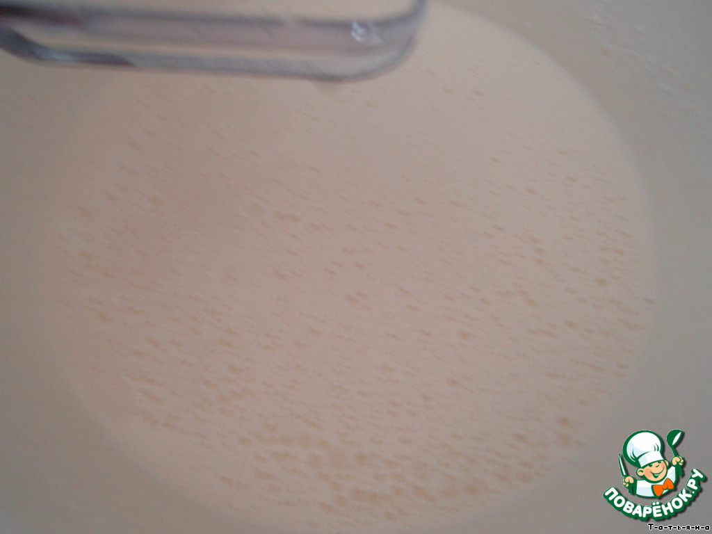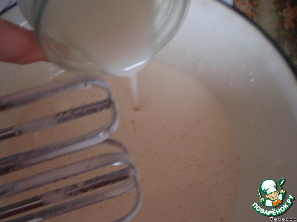 И муку, все хорошо перемешиваем. Я на минимальной скорости все взбиваю миксером.