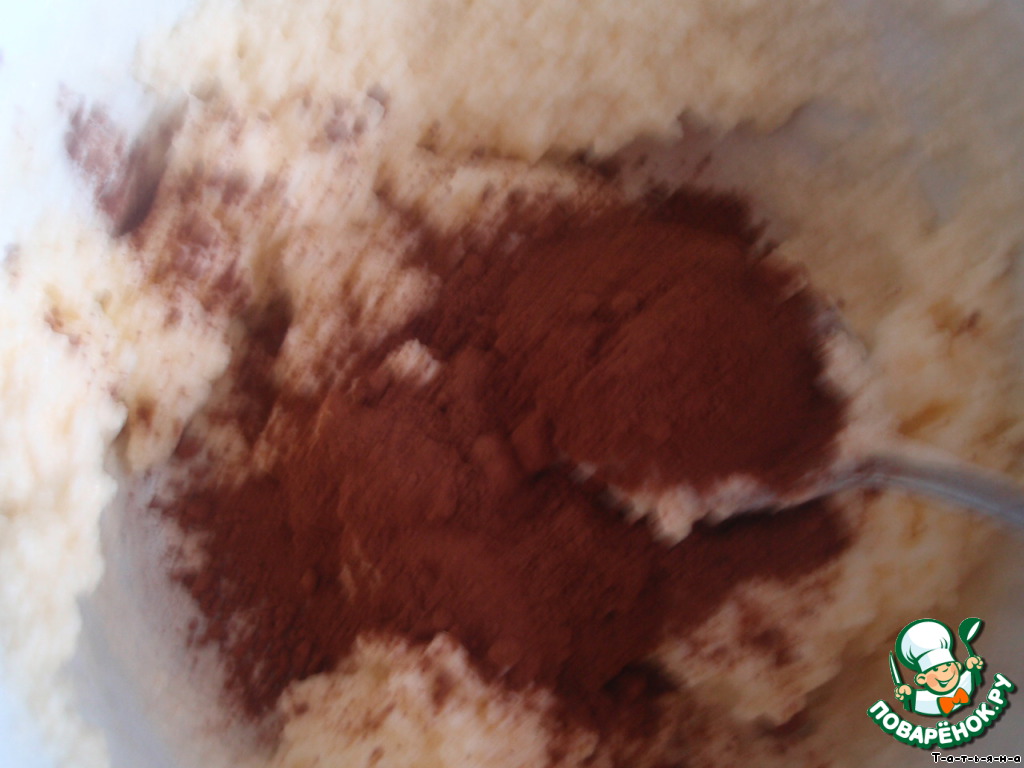 А затем какао, и тоже мешаем в одну сторону. Крем получается очень-очень вкусный, делаю его с какао и без него, но с какао мне нравится больше.