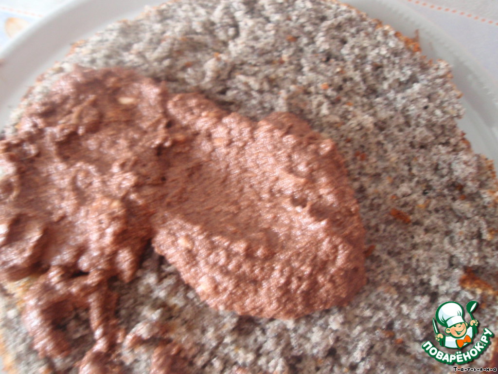 Готовые коржи остудить, обязательно!, а то наш крем сразу впитается. Перемазать коржи кремом.