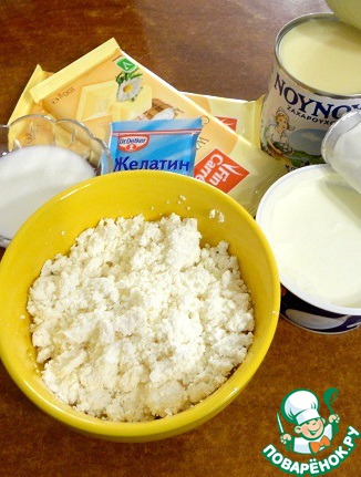 Добавить к творожной массе желатин и слегка теплый шоколад. Продолжая взбивать, добавить сгущенное молоко (от 150 до 200 г), ориентируясь на свой вкус.