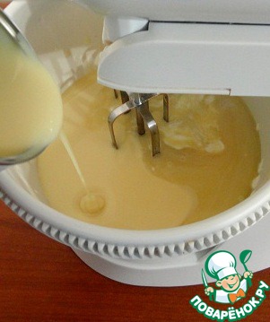 Продолжая взбивать.
