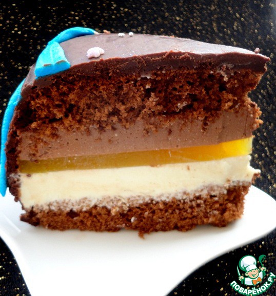 Сверху готовый торт залить черным шоколадом.
