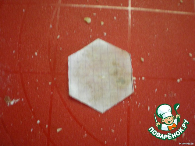 Уложить шестиугольники на торт,соблюдая тот порядок,в котором они располагаются на футбольном мяче.Поставить в холодильник до подачи на стол.