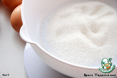 Желтки взбивать со 100 гр сахара в светлую массу на максимальной скорости примерно 2-3 минуты.
