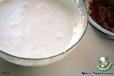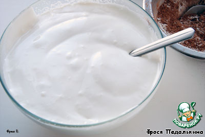 Белки взбить в пену, добавить оставшийся сахар. Взбивать 2-3 минуты до блестящей массы.